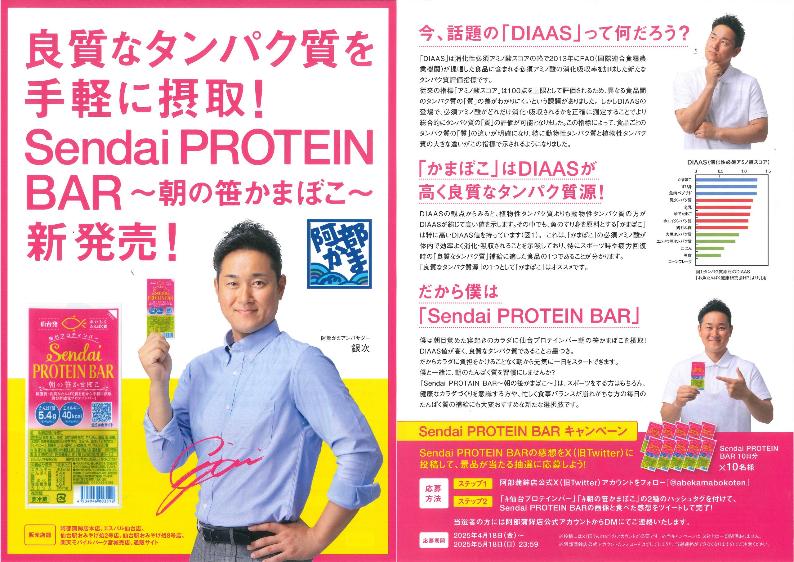 株式会社阿部蒲鉾店から、良質なタンパク質を手軽に摂取できる「Sendai PROTEIN BAR~朝の笹かまぼこ~」が新発売されました。