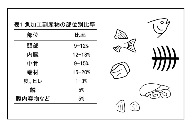部位ごとの廃棄比率を表1に示す1-3)。頭部、内臓、中骨、端材が大部分を占めており、それぞれの部位に適した活用法の開発が求められている。